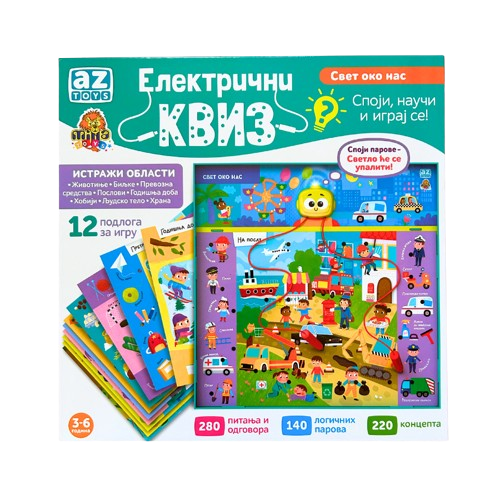 Električni Kviz je interaktivna igra koja podstiče decu da istražuju svet oko sebe na zabavan i edukativan način.