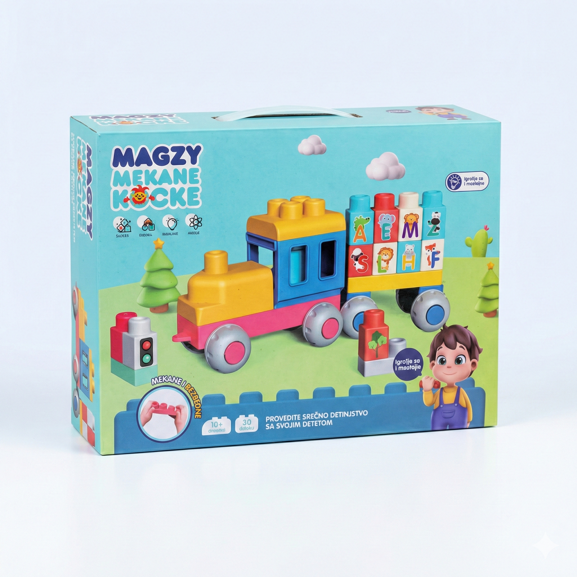 Mekane kocke Vozić predstavljaju savršen prvi set za gradnju kod mališana. Zahvaljujući velikim dimenzijama i mekanom materijalu, dete može lako da ih drži, slaže i razdvaja bez frustracije. Svako uspešno slaganje podstiče osećaj postignuća i razvija samopouzdanje.