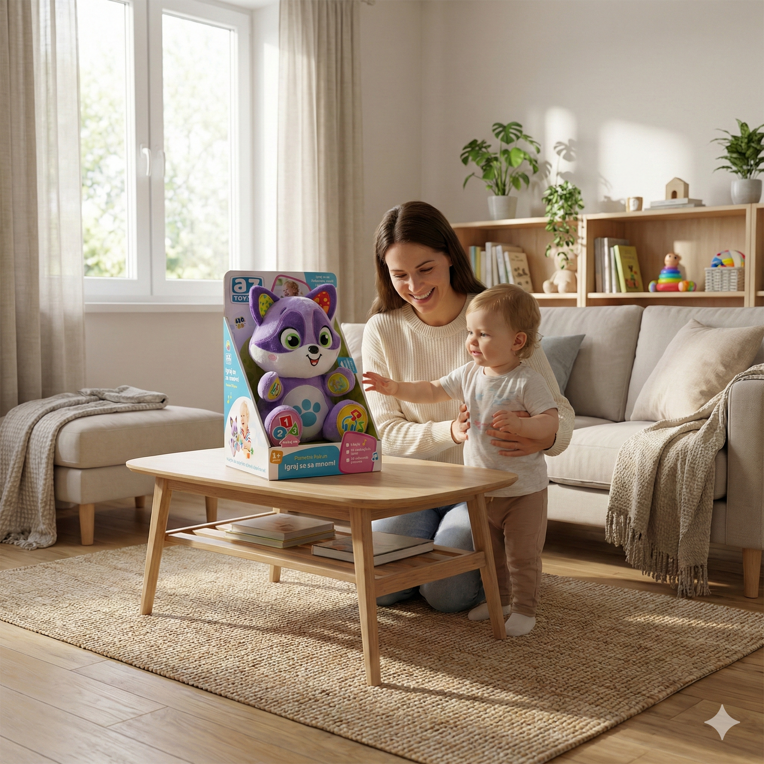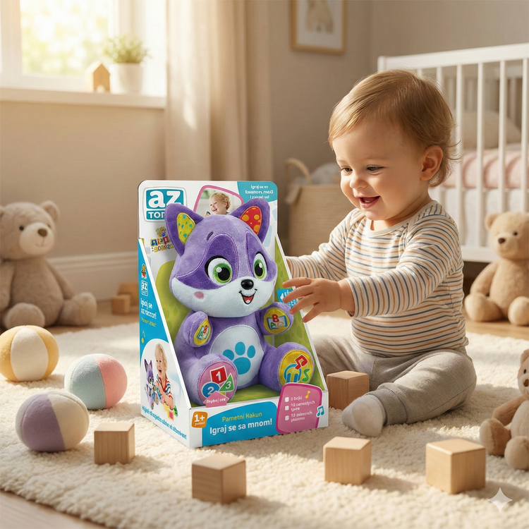 Pametni rakun je osmišljen tako da kroz igru približi deci prve pojmove, slova i zvuke. Veselim glasom, muzikom i pričama, ova igračka zadržava pažnju mališana i čini učenje prirodnim i zabavnim.
