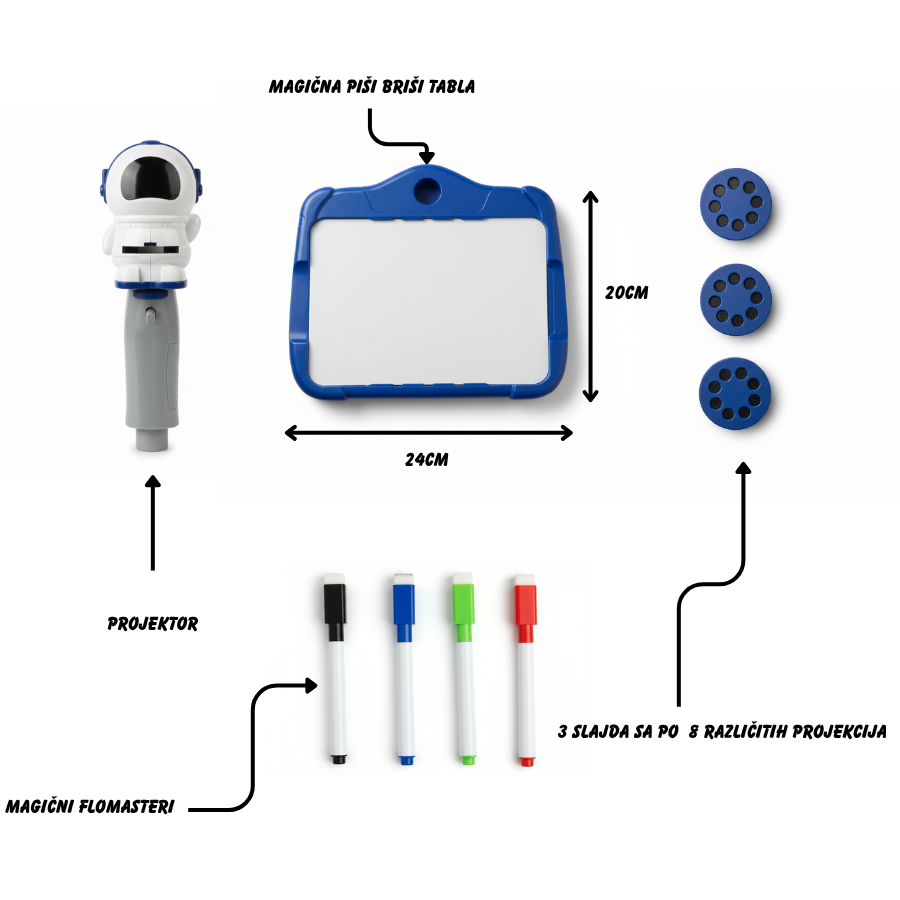 Zahvaljujući sigurnim materijalima i čvrstoj podlozi, može se okačiti na zid u sobi, koristiti kod kuće ili poneti kod bake – gde god dete poželi da se igra i meri.
