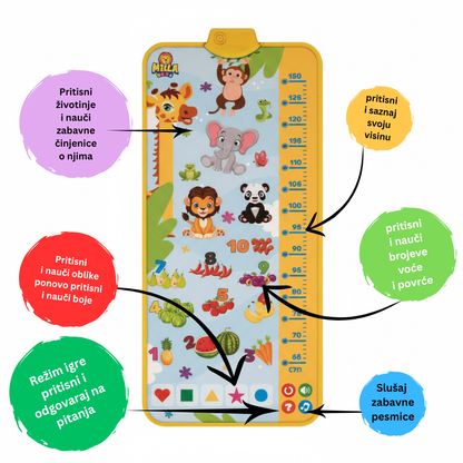 Svaki dodir pokreće zvuk, pesmicu ili zabavno pitanje koje dete motiviše da uči i istražuje. -