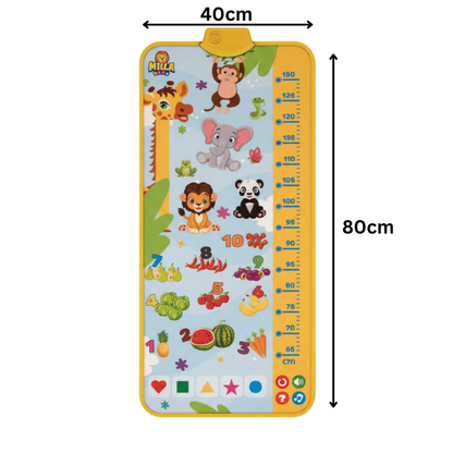 Zahvaljujući zabavnom dizajnu sa životinjama i brojevima, dete prilikom igre uči da prepoznaje boje, oblike i brojeve – dok istovremeno vidi koliko je poraslo!